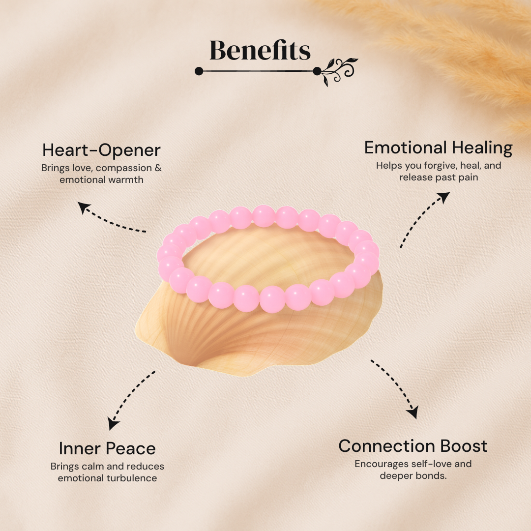 This Rose Quartz Bracelet, with a Buddha charm, opens your heart chakra—supporting self-love, forgiveness, and deeper connection. It’s all about nurturing the heart and bringing calm from within