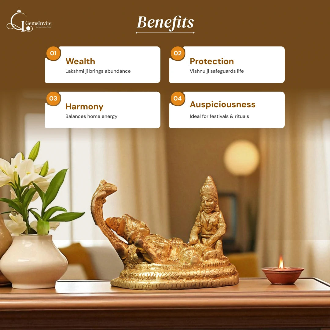 Shri Vishnu Ji & Laxmi Ji Sitting On Sheshnaag In Brass