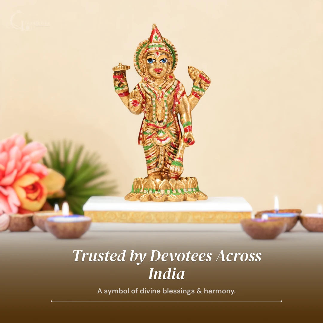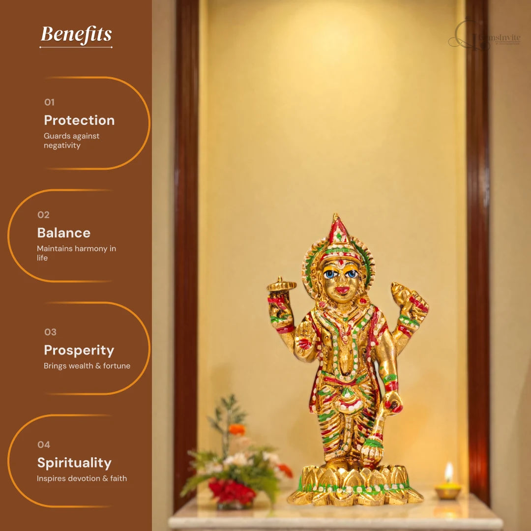 Regular price Rs. 1,199.00This beautifully handcrafted Brass Lord Vishnu idol brings divine protection, balance, and prosperity into your home. With its vibrant detailing and long-lasting shine, it creates a sacred aura, blessing your family with peace, wealth, and harmony.