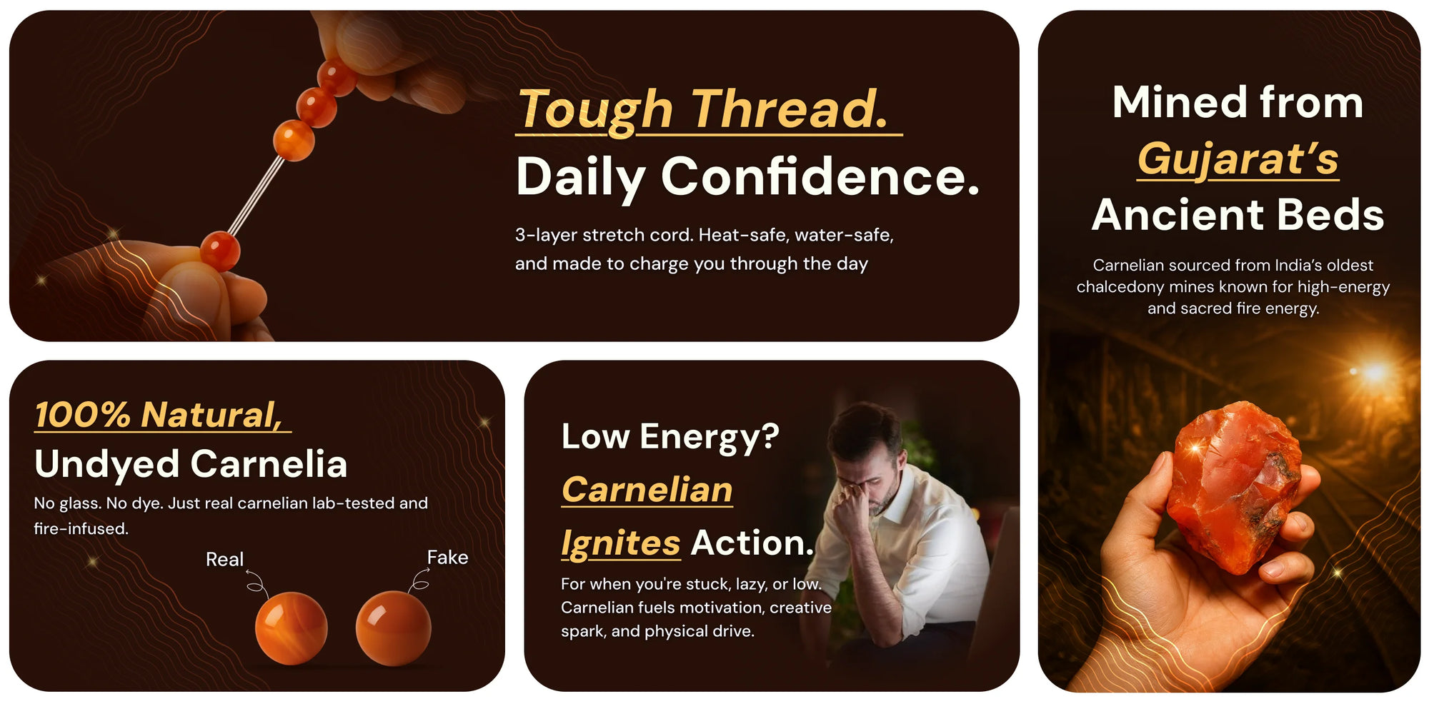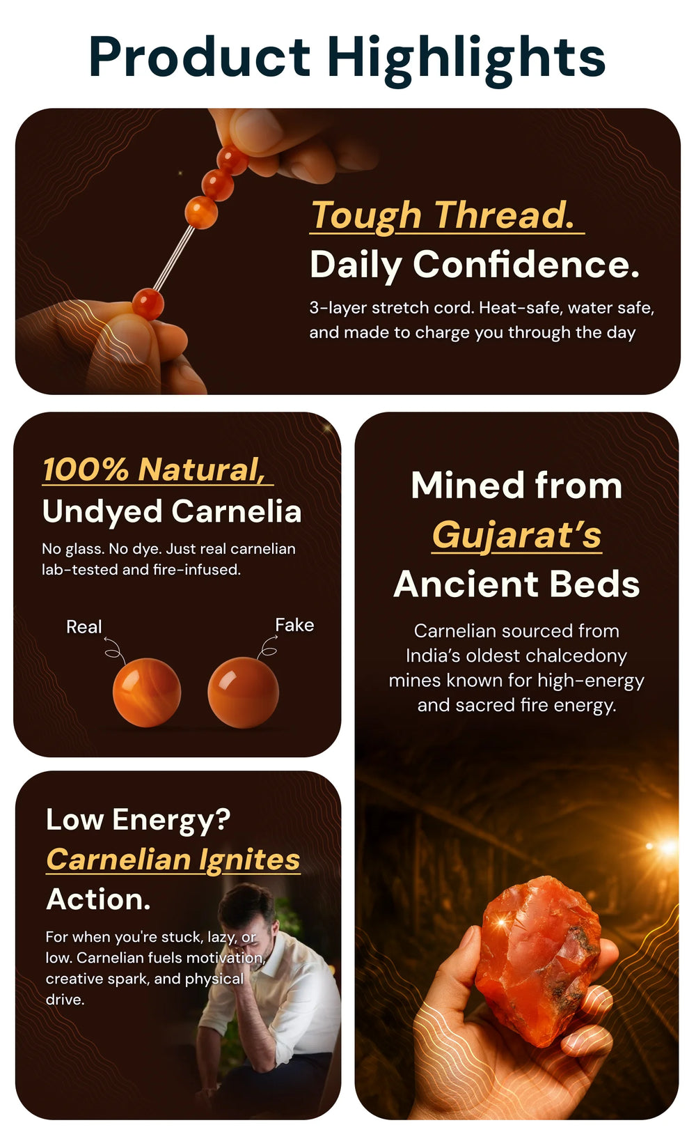 This Carnelian Bracelet is linked with courage, confidence, and action. It is best for days when you need a push. The warm red carnelian crystal bracelet helps you if you’re tired of overthinking and want to actually start doing things. Wear the red carnelian bracelet as a daily reminder to show up bold and focused.