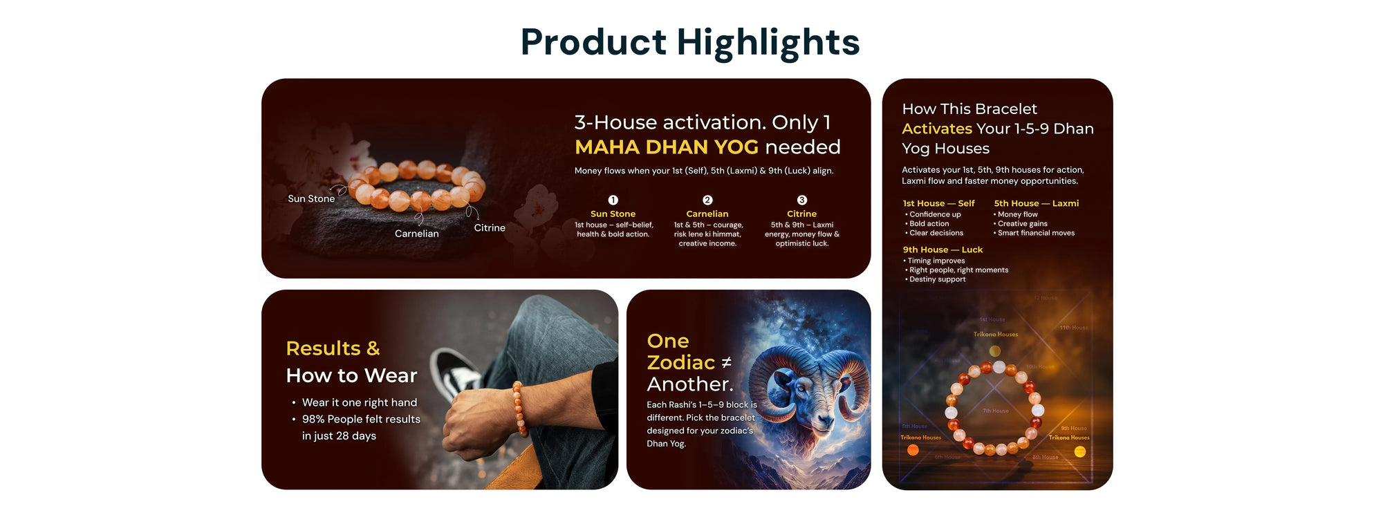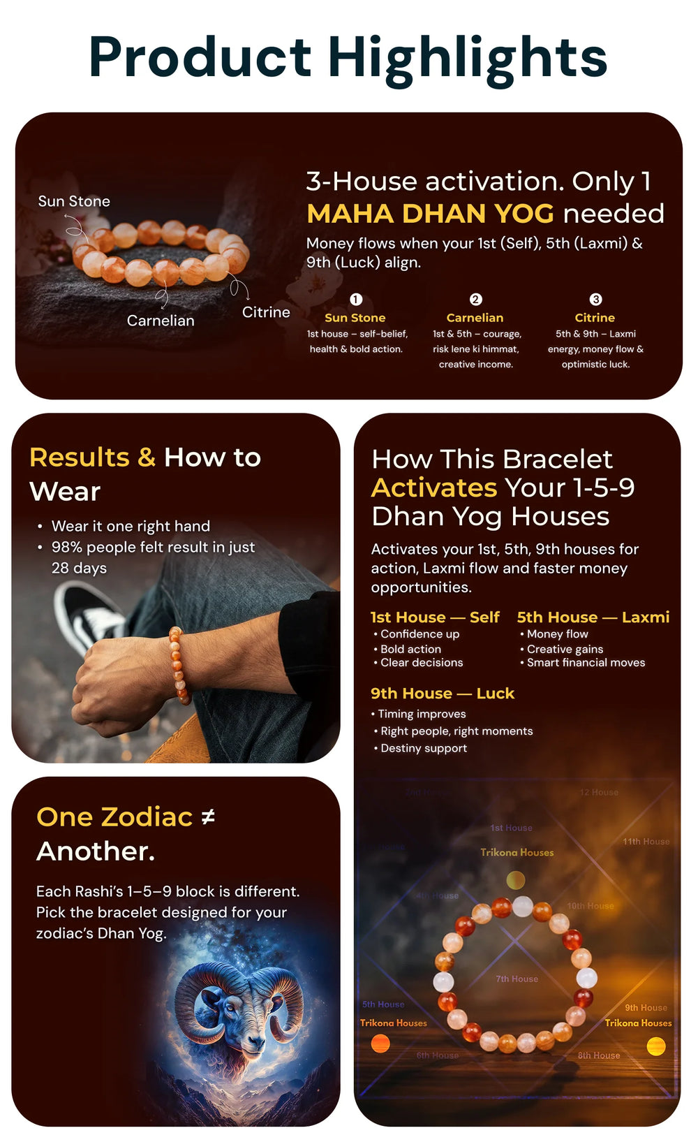 This Aries Maha Dhan Yog bracelet aligns your courage with money opportunities. It supports bold career moves, business decisions and steady income growth, so your hard work finally shows up as profit and real progress.
