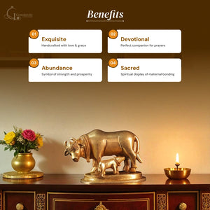 Bring home the divine Brass Cow with Calf Idol, a sacred symbol of purity, motherhood, and abundance. This idol radiates maternal love while blessing your family with prosperity, harmony, and protection. Perfect for prayers and heartfelt devotion.