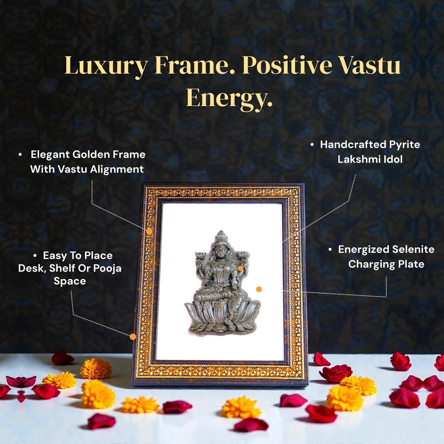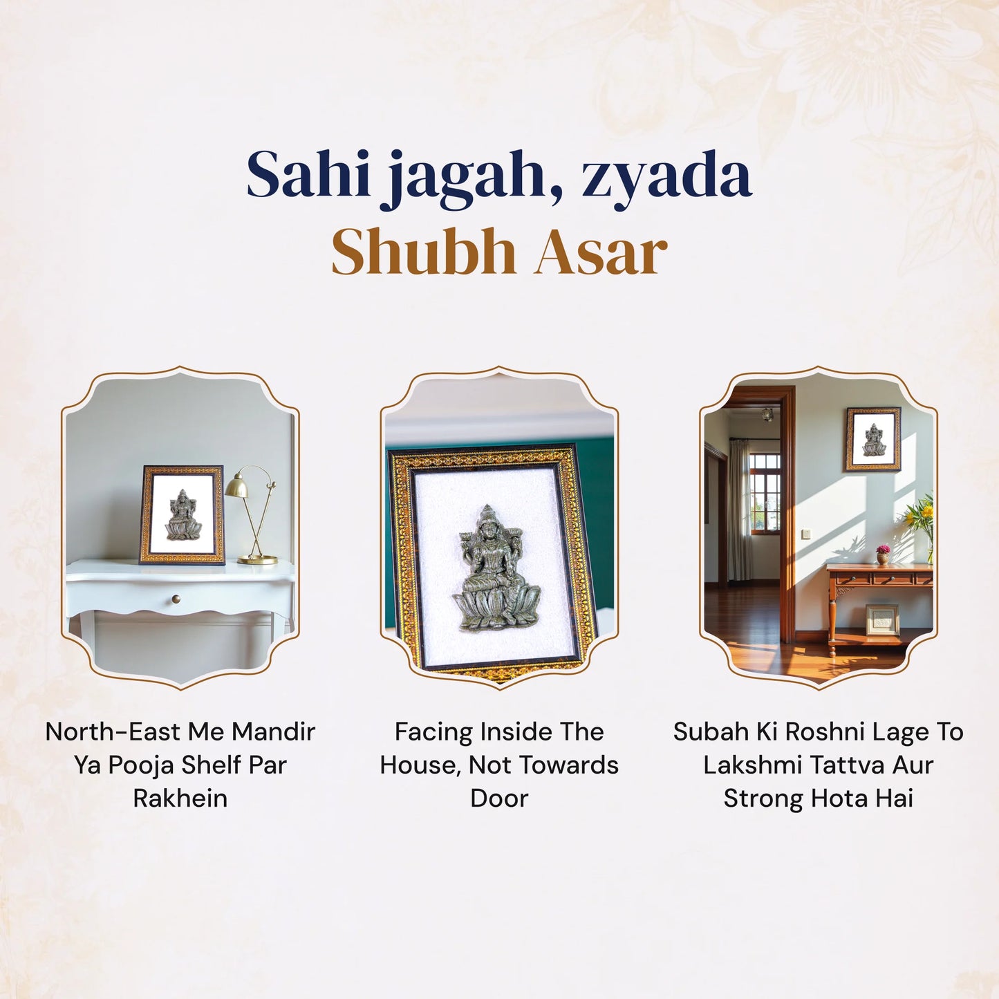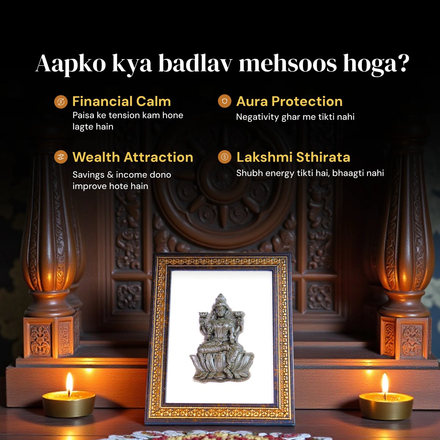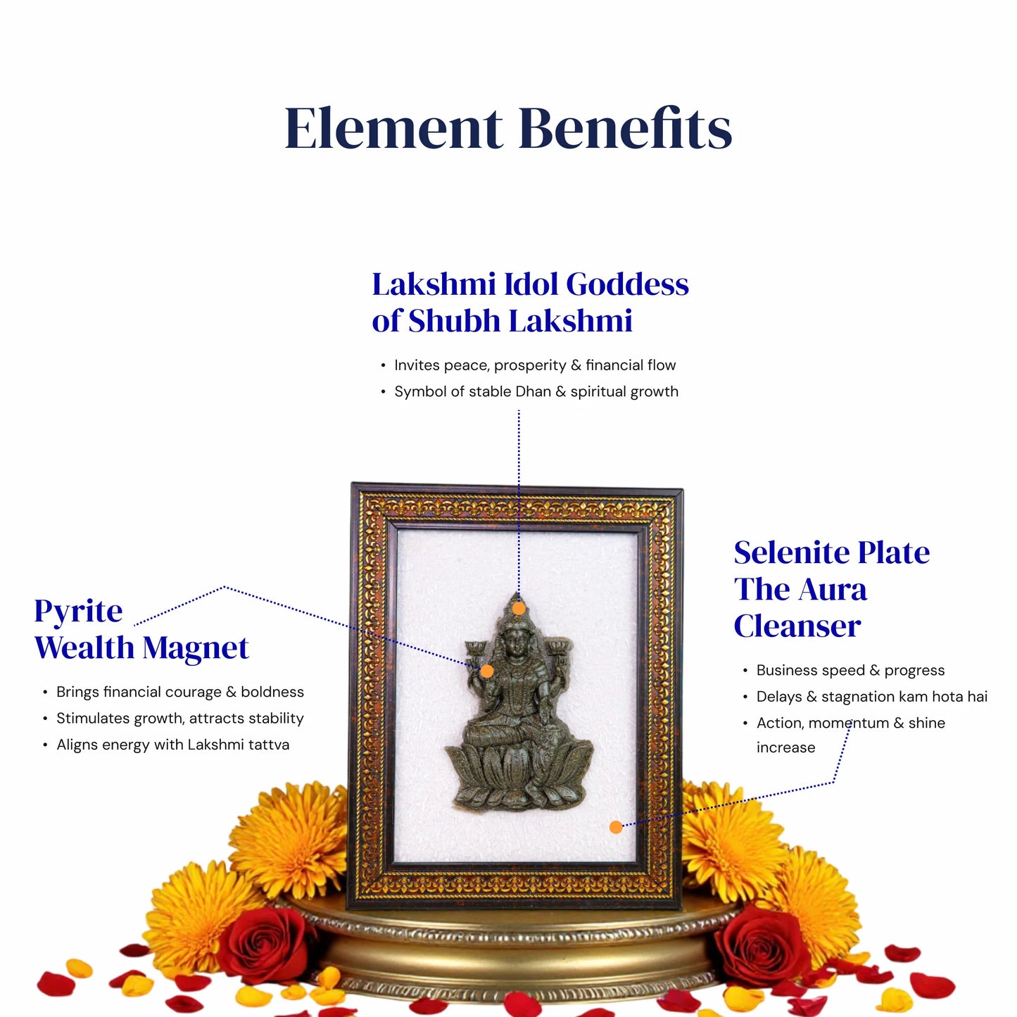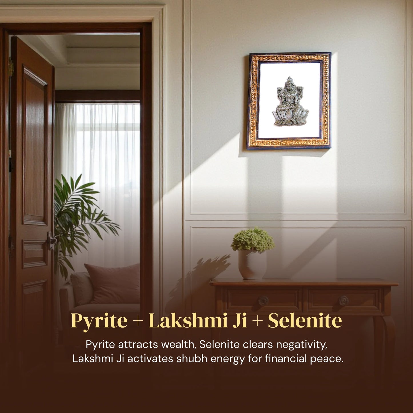 Yeh frame un logon ke liye hai jo apne ghar ya kaam ki jagah me dhan ki sthirata, mental peace aur financial positivity chahte hain. Lakshmi Ji shubh labh ka prateek hain, aur pyrite unki dhan-shakti ko activate karta hai. Neeche chhupa hua selenite plate daily pyrite ko recharge karta hai aur energy ko clear rakhta hai.