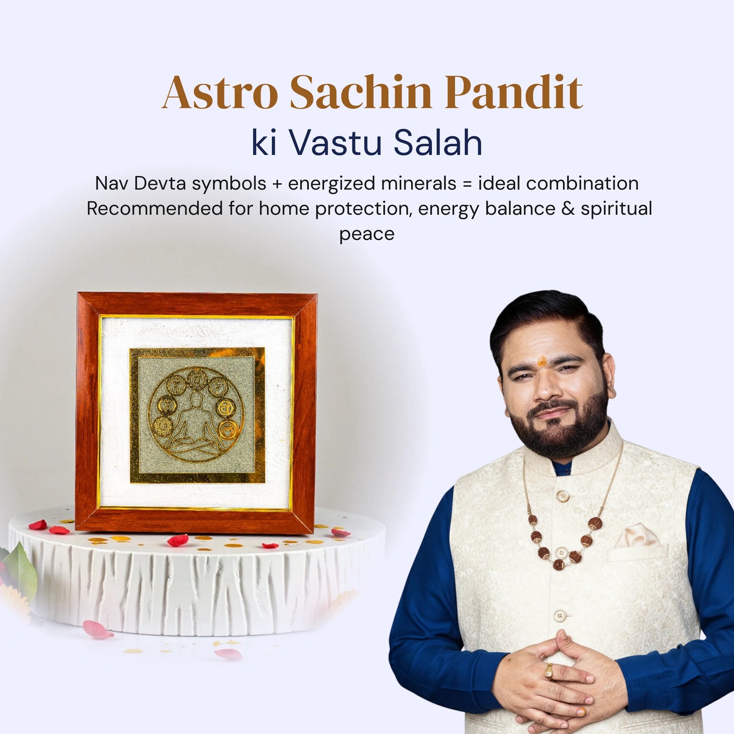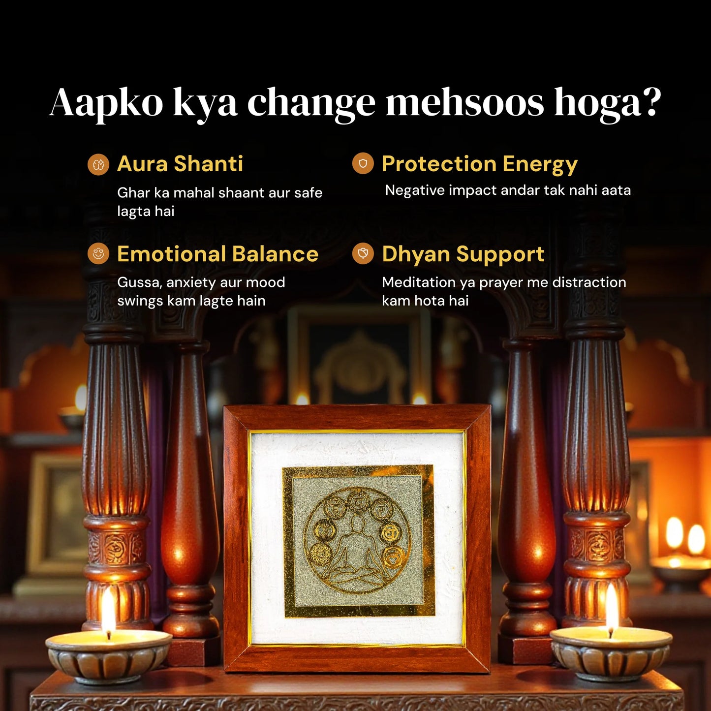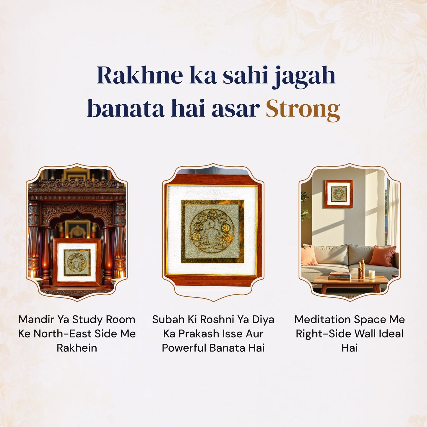 Yeh Jain Nav Devta frame un logon ke liye hai jo apne space me spiritual peace, protection aur clarity lana chahte hain. Nav Devta ka sacred symbol + pyrite dust focus aur inner strength activate karta hai. Niche chhupa selenite layer energy ko clean aur recharge karta hai, bina kisi effort ke.