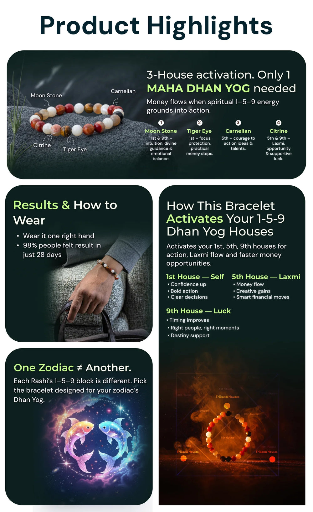This Pisces Maha Dhan Yog bracelet is for people who feel a lot, help a lot, but struggle with money. It supports emotional balance, clear thinking and steady income, so you can care for others without ignoring your own needs.