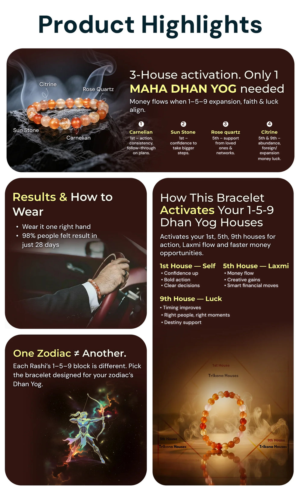 This Sagittarius Maha Dhan Yog bracelet is for people who dream big but feel stuck in money and career. It supports luck, right guidance and bold action, so your growth plans slowly start turning into real income