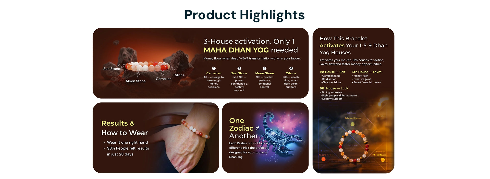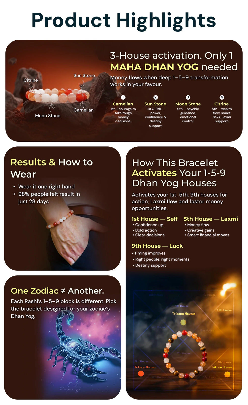 This Scorpio Maha Dhan Yog bracelet is for people who face big ups and downs in money, work and business. It helps you calm your mind, take sharper decisions and slowly turn crisis energy into growth and profit.