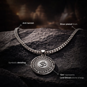 The Silver Plated Maha Mrityunjaya Mantra Om Necklace carries the sacred power of Lord Shiva, acting as a divine shield against negative forces. It removes fear, uplifts your spirit, and deepens your spiritual connection. Wearing this every day brings inner peace, emotional calm, and a stronger sense of purpose, helping you live with courage, light, and clarity.