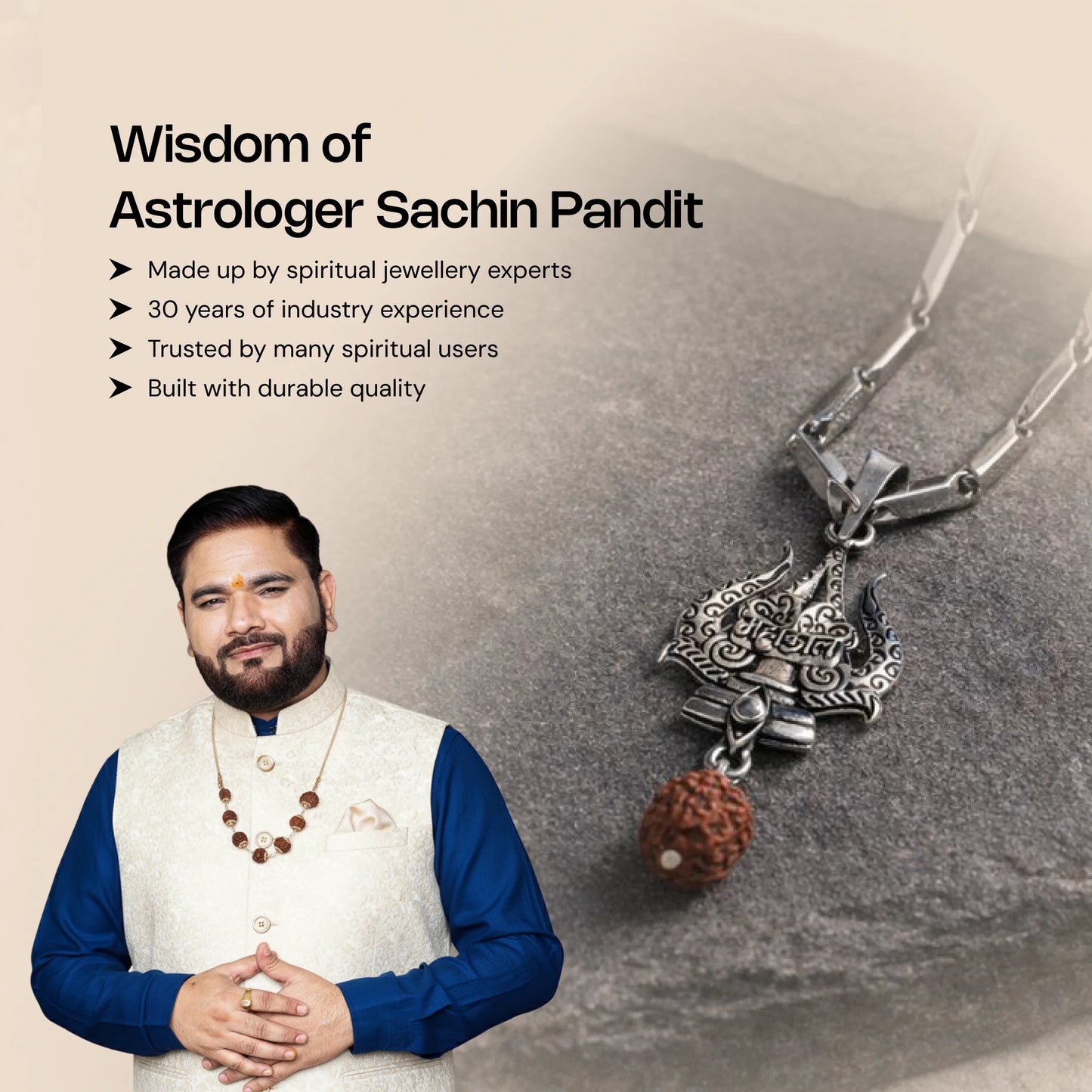 Stainless Steel Silver Pendant with Rudraksha and Trishul