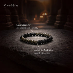 The Vijay Lakshmi Bracelet is designed to attract financial growth, enhance confidence, and protect against negativity. Made with Pyrite and Lava beads, it helps you feel grounded, empowered, and emotionally balanced. Whether you're seeking abundance or stability, this bracelet guides you towards prosperity while boosting your self-belief and helping you stay clear-headed and focused on your goals.